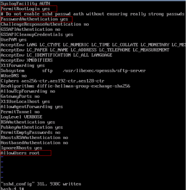 - 在“/etc/ssh/”目錄下,修改sshd_config文件中3個配置項,修改參數如下圖所示。