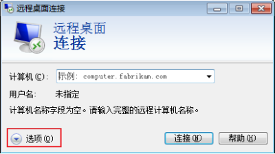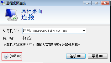 - 在“遠程桌面連接”窗口,單擊左下角的“選項”。