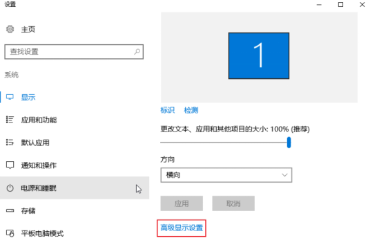 - 在“設置”界面,選擇“顯示”頁簽,單擊“高級顯示設置”。