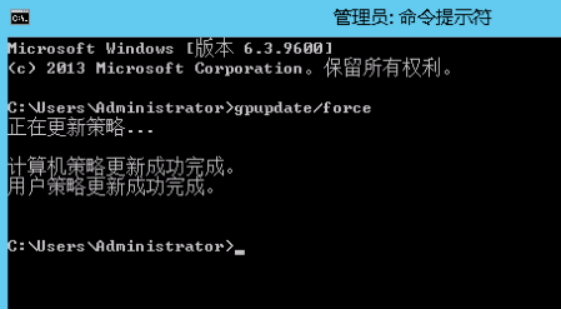 - 在命令窗口執行gpupdate/force,更新組策略。