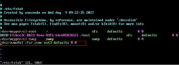- 刪除NVMe SSD盤的掛載信息并保存,如下圖所示。