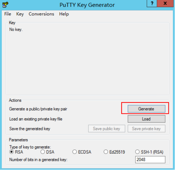 - 雙擊“PUTTYGEN.EXE”,打開“PuTTY Key Generator”。