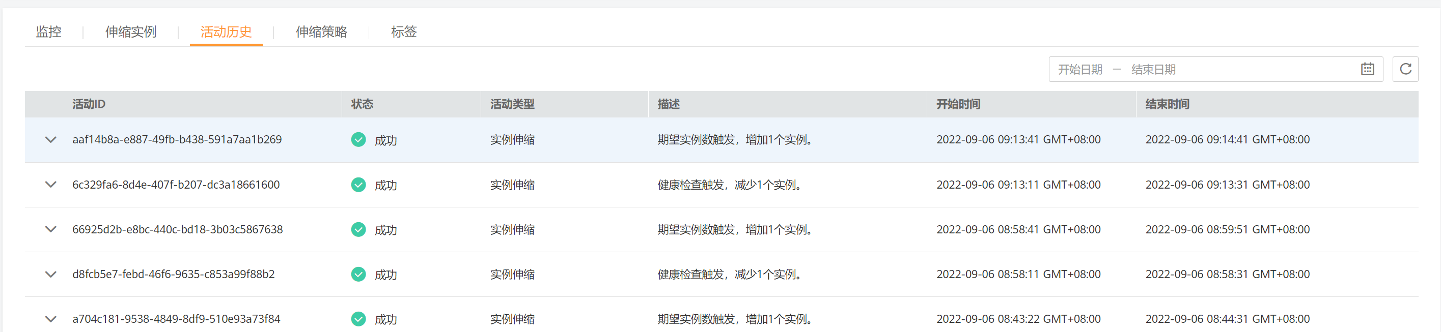 下面介紹如何查看伸縮(suo)組的伸縮(suo)活動: