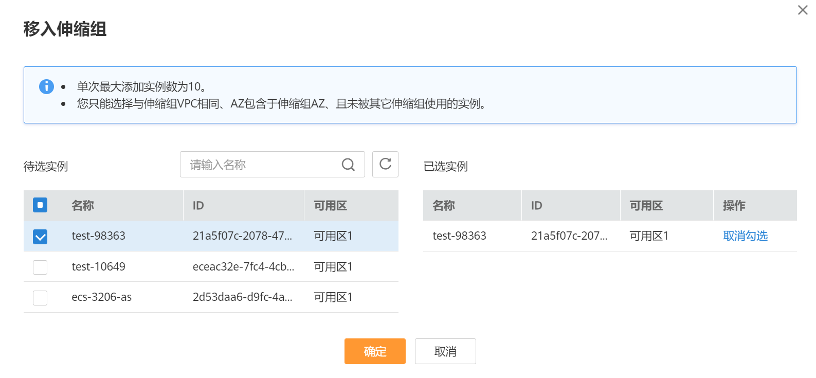 - 移入后實例數不能大于伸縮組的最大實例數。