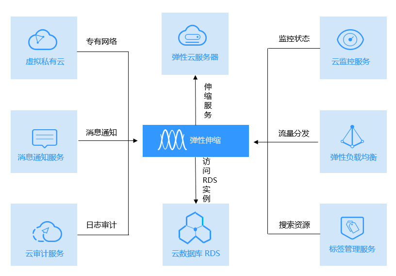 彈性(xing)伸縮(suo)服(fu)務與其他(ta)服(fu)務的(de)關系示意圖