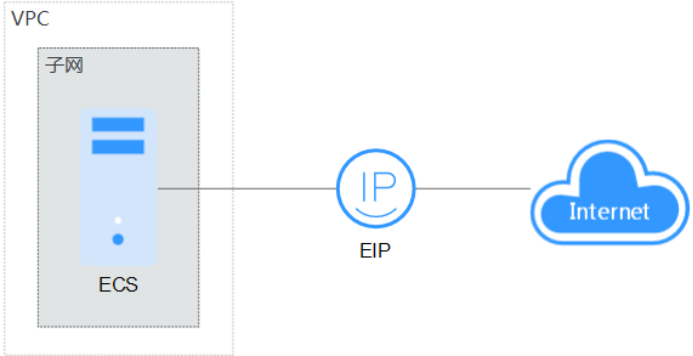 當您僅有單個應用服務,業務量較小時,您可申請一個EIP,綁定到ECS上,該ECS即可連接公網提供服務。