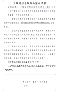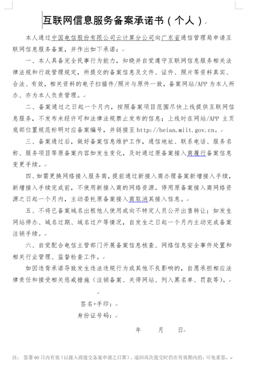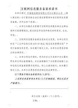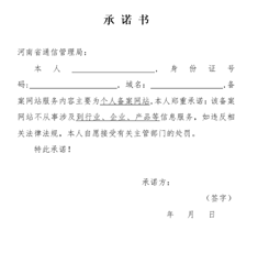 網站負責人不為法人時,需提供委托書,此處僅為樣例,具體省份承諾書版本請到資料下載頁進行下載。