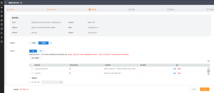 8、當所有檢查都是“通過”時,單擊"下一步”單擊“提交任務”。返回DRS實時遷移管理,查看遷移任務狀態。