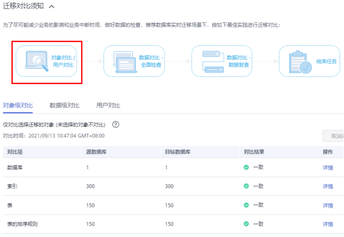 9、遷移完成后可在控制臺左側點擊遷移對比查看遷移對比結果