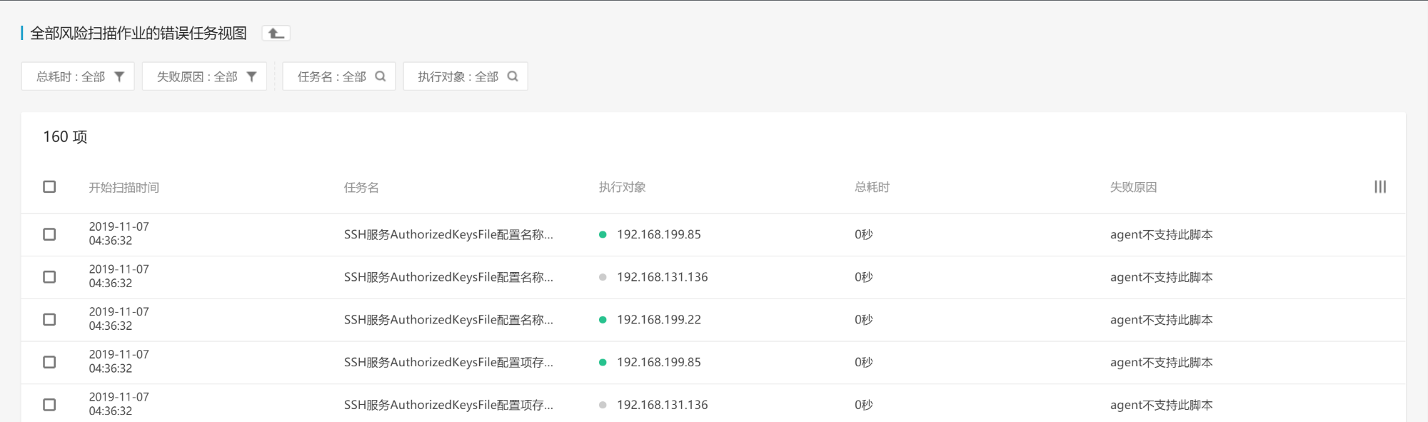 每條記錄支持對失敗主機的詳情進行查看,點擊“失敗主機詳情”按鈕可查看失敗主機列表。