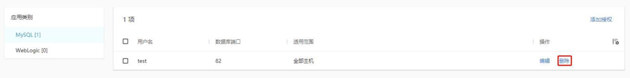 選擇需要刪除的授權,點擊“操作-刪除”按鈕,可刪除對應的授權。