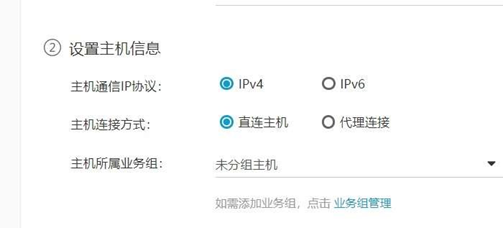 主機所屬業務組:可以選擇安裝 Agent 主機所屬的業務組。可點擊快捷鏈接主機管理,跳轉到業務組界面進行業務組管理。