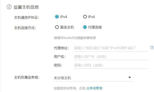 - 主機所屬業務組:可以選擇安裝 Agent 主機所屬的業務組。可點擊快捷鏈接,跳轉到業務組界面進行業務組管理。