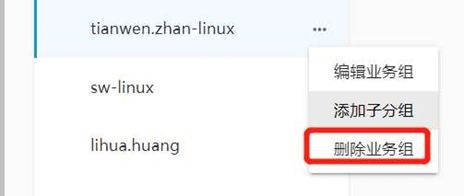 ,選擇“刪除業務組”即可。