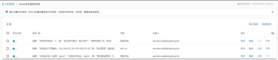 通過規則設置,可自動將某類主機進行部分操作,包括移動業務組、打標簽、編輯運維信息等。