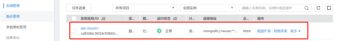2.在文檔(dang)數據庫服務(wu)“實例(li)(li)管(guan)理”頁(ye)面,選擇目標實例(li)(li),單擊實例(li)(li)名稱,進入實例(li)(li)“基本信息”頁(ye)面。