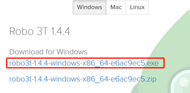 2.在彈出框中(zhong),下(xia)載“robo3t-1.4.4-windows-x86_64-e6ac9ec5.exe”。