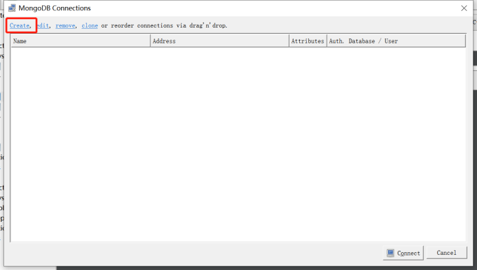 4.安裝(zhuang)完成后(hou),打開(kai)工具,在連接信息頁面,單(dan)擊“Create”。