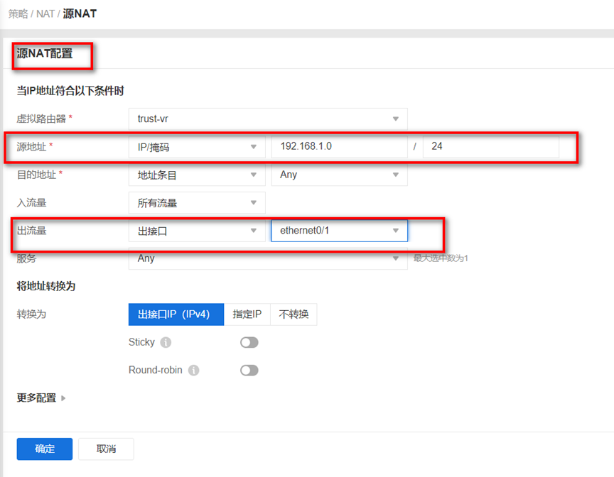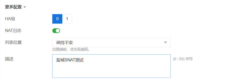 放行策略配置完成,需針對業務進行訪問控制隔離配置,首先配置出站SNAT策略。