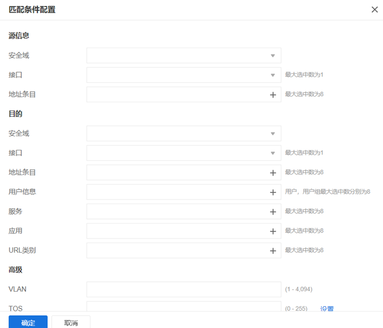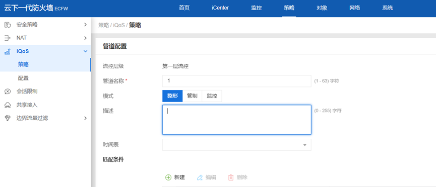 2.新建匹配條件,可依據針對某IP或者某角色進行帶寬限制,正向和反向是按照源地址到目的地址進行劃分。