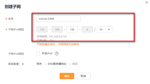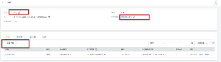 2.創建子網,保證創建子網與現有子網不沖突即可。