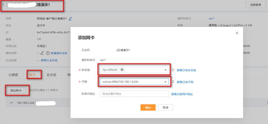 網卡新增成功后,可進入云下一代防火墻web頁面進行配置即可。