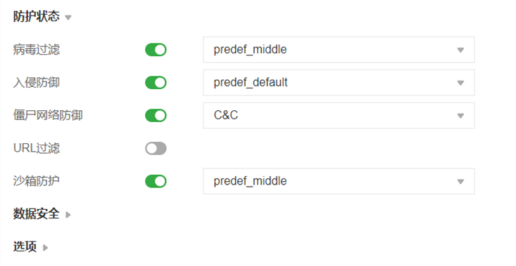 3.防護模板調用,可根據需求調用防護模板,使對應安全策略生效。