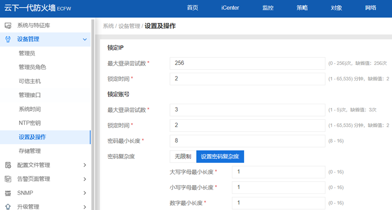 云下一代防火墻首次登錄后,需強制修改密碼,密碼策略及修改賬密操作。