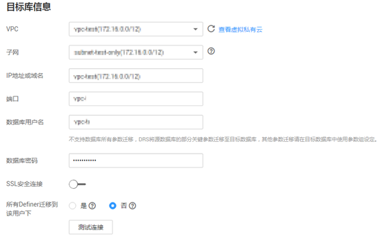 當您選擇遷移用戶時,請參見《數據庫復制服務用戶指南》中“遷移用戶”章節進行數據庫用戶、權限及密碼的處理。