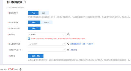 說明選擇“全量+增量”同步模式,增量同步可以在全量同步完成的基礎上實現數據的持續同步,無需中斷業務,實現同步過程中源業務和數據庫繼續對外提供訪問。