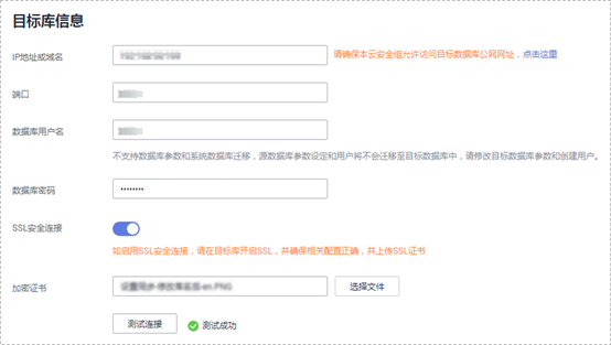 通過該功能,用戶可以選擇是否開啟對遷移鏈路的加密。如果開啟該功能,需要用戶上傳SSL CA根證書。