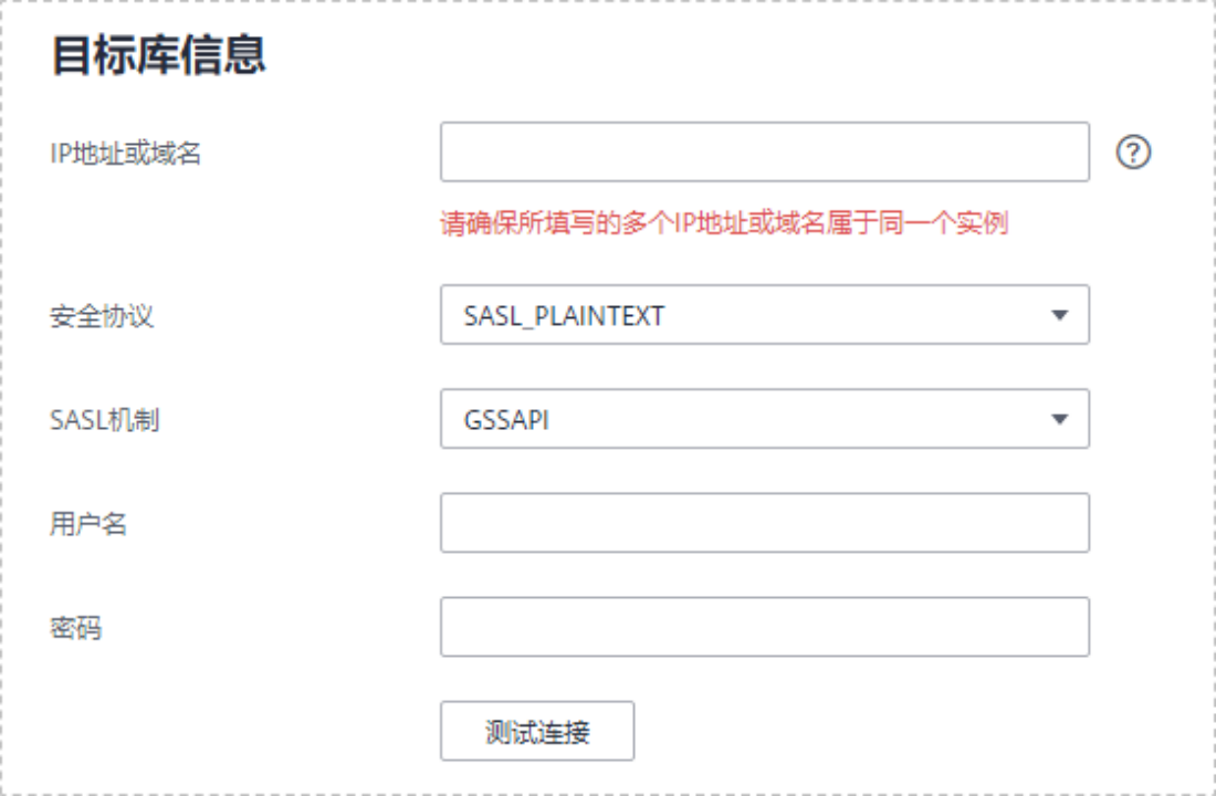 | 令牌委托 | 是否為委托令牌鑒權,SASL機制選擇“SCRAM-SHA-256”或者“SCRAM-SHA-512”時可見。 |