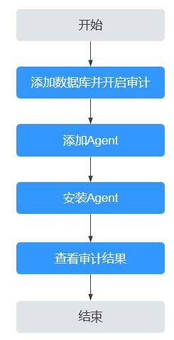 購買數據庫安全審計后,您可以參照下圖所示的配置流程,快速使用數據庫安全審計。操作步驟的詳細說明如下表所示。