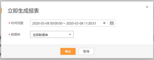 ,設置報表的開始時間和結束時間,選擇生成報表的數據庫,如下圖所示。