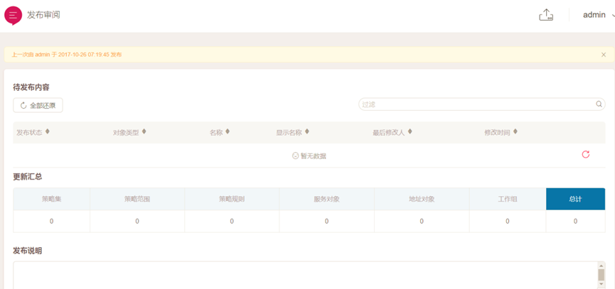 更新發布有兩個作用,一是可以記錄本次需要發布的所有操作,便于審閱;二是通過本頁面點擊發布,將本次的所有操作同步到Agent。