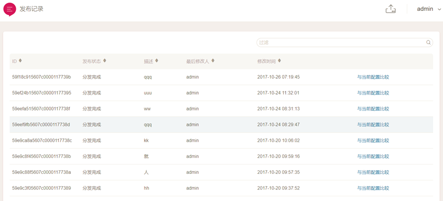 發布記錄頁面會記錄每次發布的內容,包括分發狀態,描述,發布人,發布時間等信息。