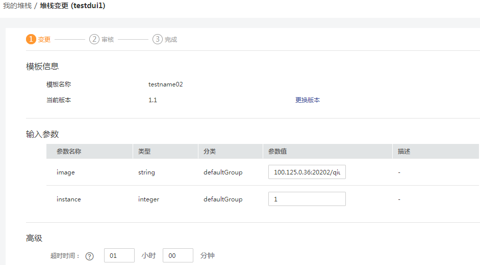 堆棧創建成功后(狀態為正常),可以根據自身需求變更堆棧輸入參數。