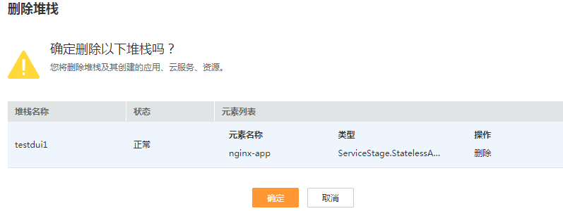 請仔細核對堆棧的名稱,執行刪除后不能恢復。