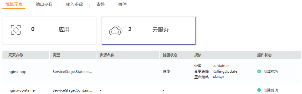 通過查看堆棧事件來監控堆棧相關操作進度。例如,升級堆棧,在“事件”頁簽中會顯示堆棧升級過程中的每個重要步驟(按照每個事件的時間進行排序,最新的事件顯示在最上方)。