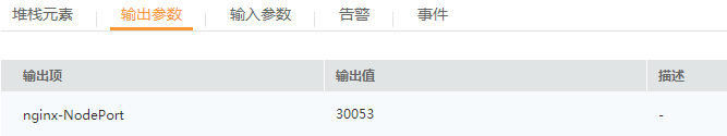 顯示在堆棧模板中聲明的輸出參數及其取值。