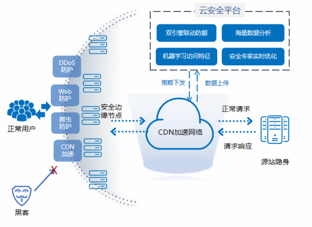 安全加速(Secure?Content?Delivery?Network,SCDN),?又名安全的內容分發網絡。構建于電信云CDN平臺之上,在CDN邊緣節點中加入豐富的安全能力,形成一張安全加速的網絡。