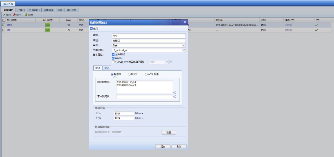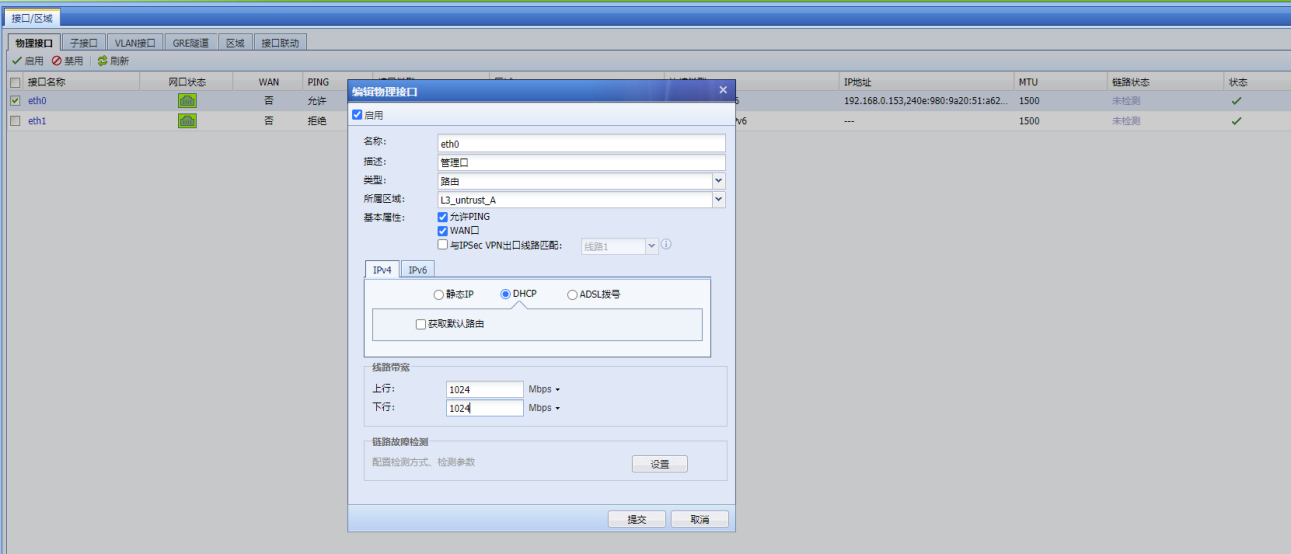 - 區域:選擇“L3_untrust_A”,設置網卡所在區域;