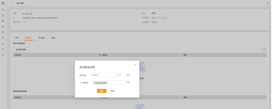 進入【控制中心】→【虛擬私有云】→【路由表】→【添加路由信息】。