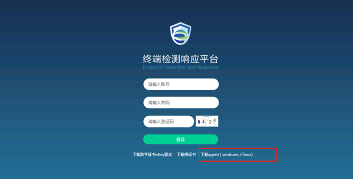 1.通過遠程登錄進入業務云主機,使用終端安全EDR內網地址,該界面登錄如下圖,點擊客戶端下載安裝。