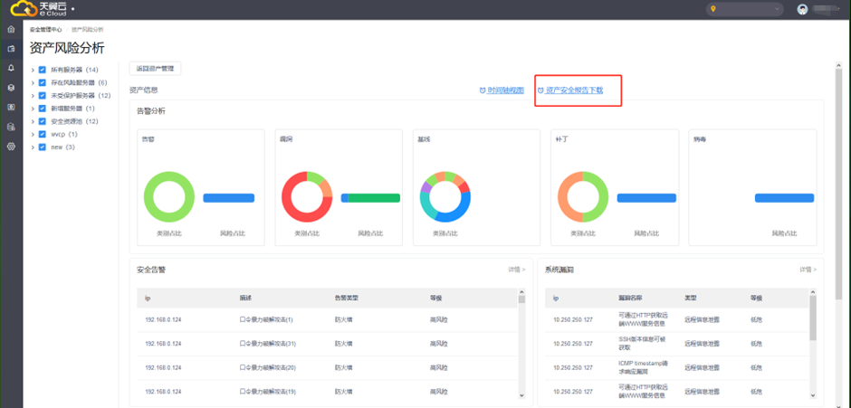 在資產分析頁面,點擊【資產報告下載】,可下載所選定資產的安全分析報告。