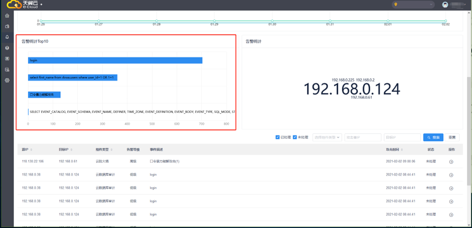 主機漏洞Top10榜單展示統計數量最高的事件排行榜,排行榜根據篩選數據實時更新。