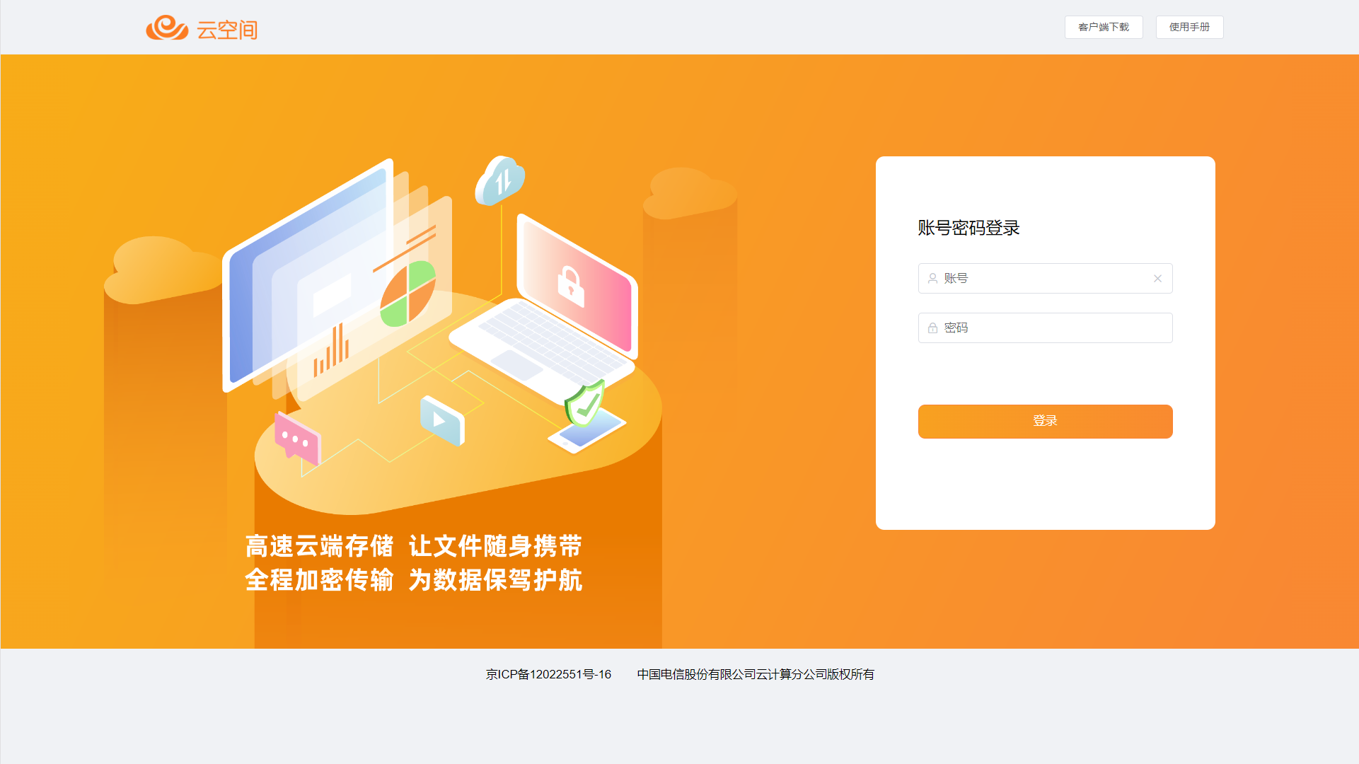 進入用戶操作頁面后,您可進行常規的文件管理、上傳下載、共享等操作。