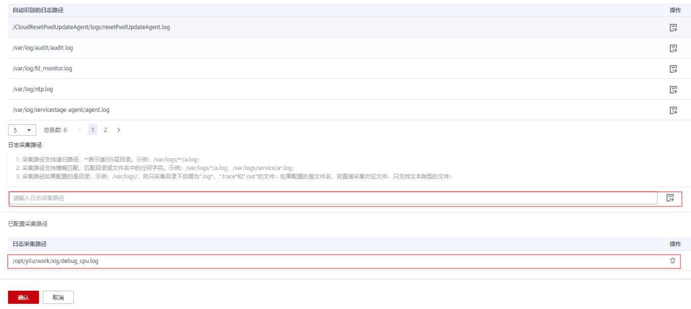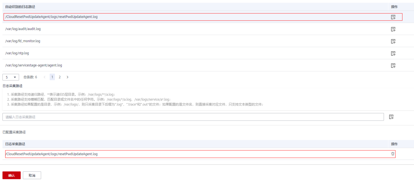 您可單擊ICAgent自動識別路徑所在行“操作”列的,將該路徑添加到“已配置采集路徑”列表中