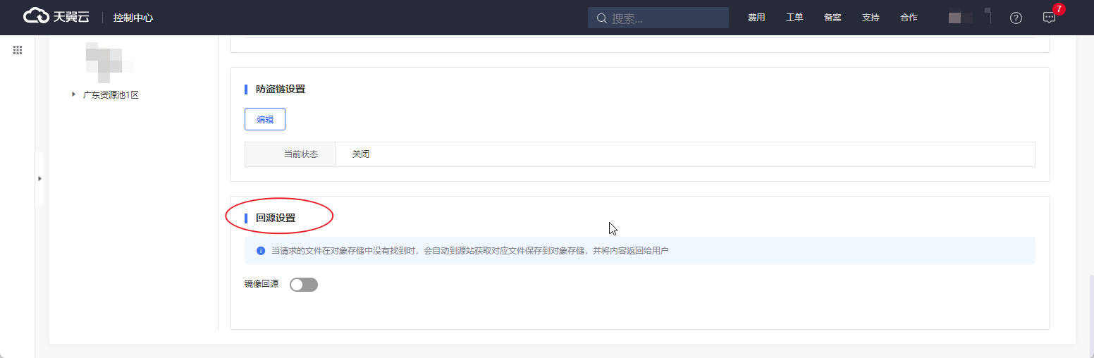 - 在【回源設置】模塊,開啟【鏡像回源】。