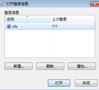 步驟 4 在打開登錄信息窗口,選中創建的連接,單擊“打開”,如下圖所示。